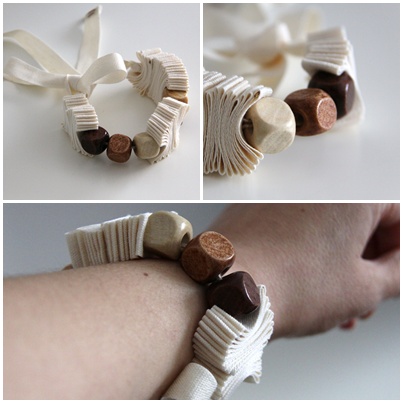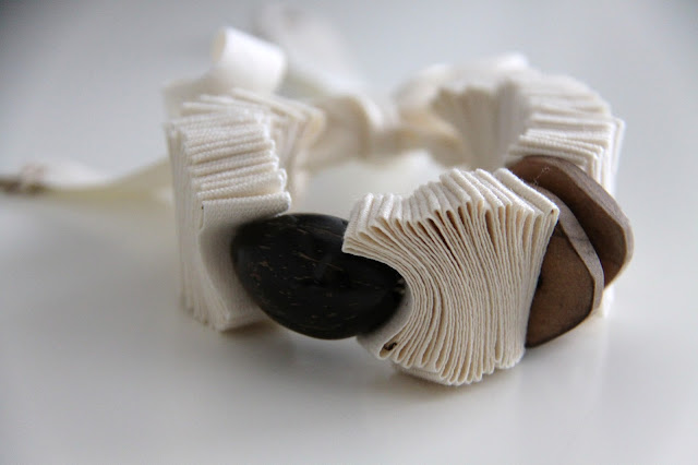 The folds remain the basis, and now I used ribbons of cotton, natural color, green and brown.